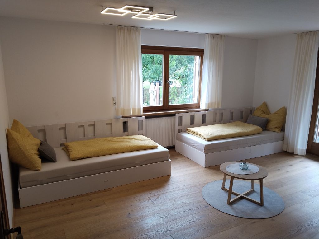 - Das Wohnzimmer bietet je nach gebuchten Personen entweder eine große Couch oder zwei vollwertige Einzelbetten (90x200cm) mit Flachbild-Fernseher